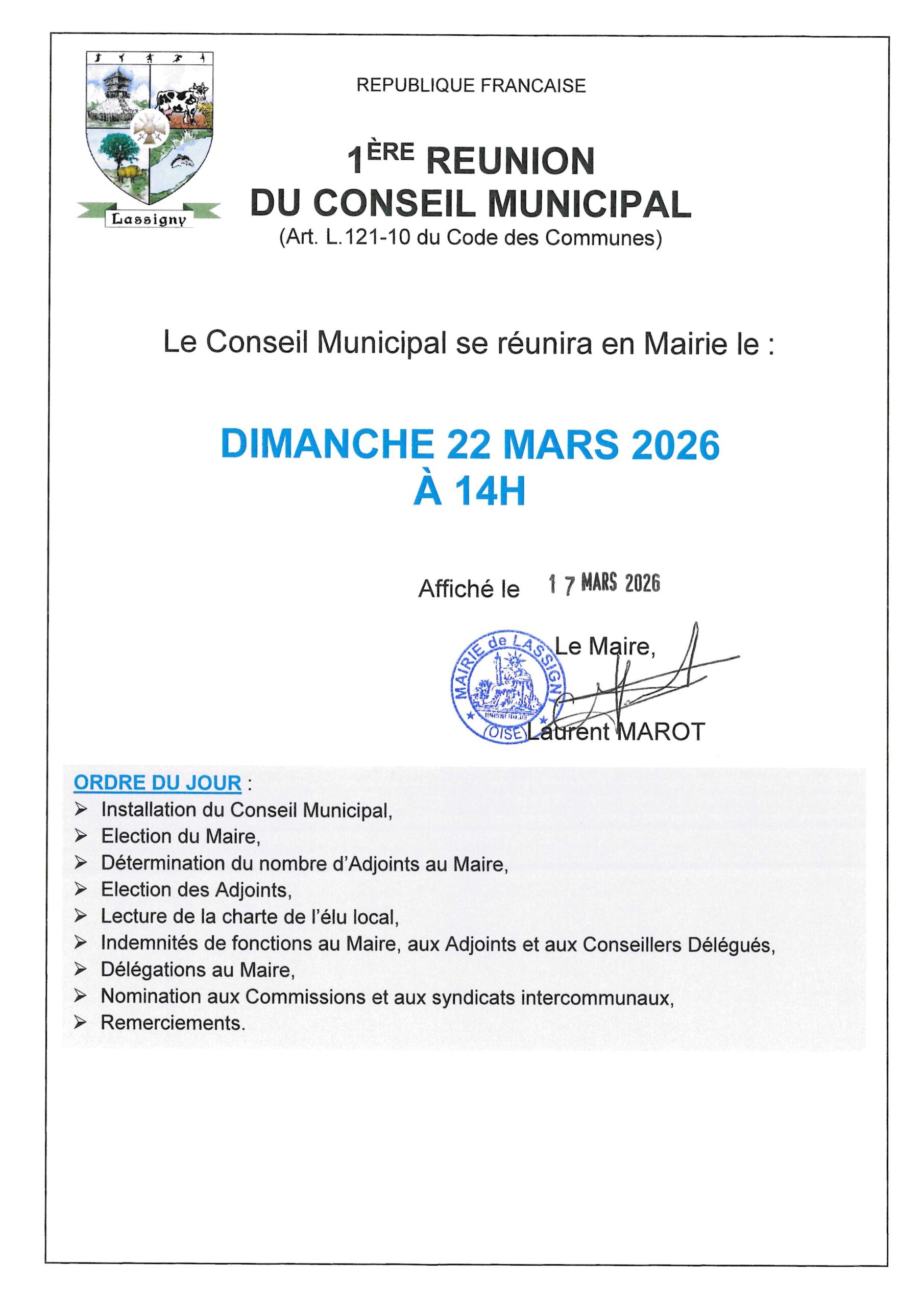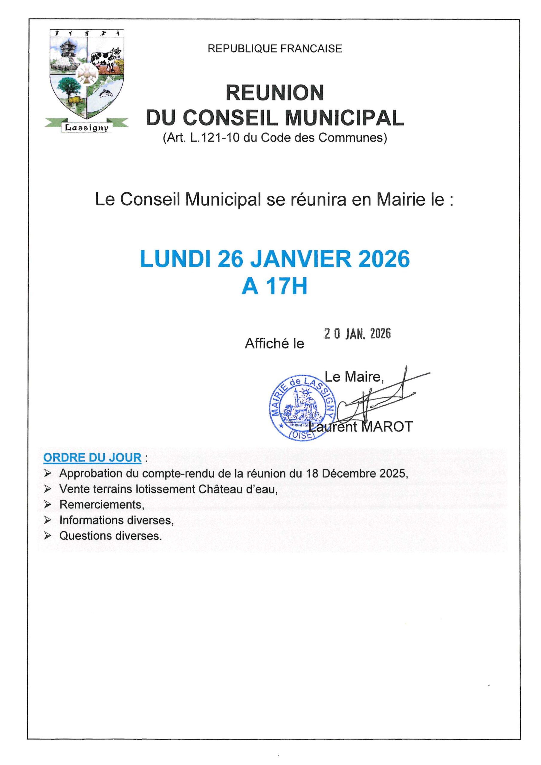 Avis de réunion du Conseil Municipal